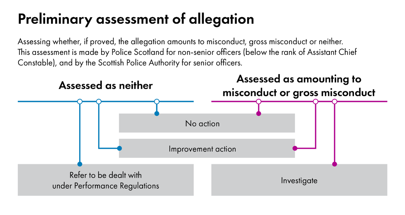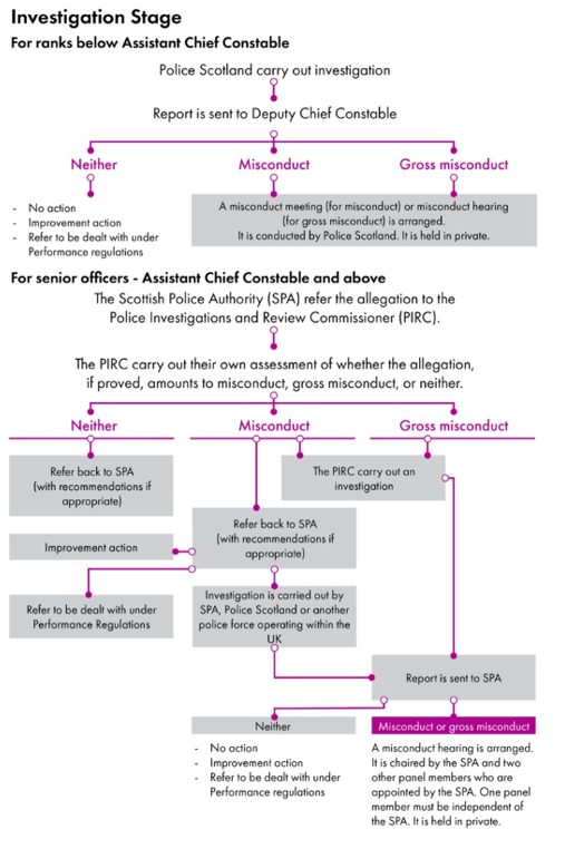 “…ensure that there are robust, clear and transparent mechanisms in place for investigating complaints, allegations of misconduct, or other issues of concern in relation to the conduct of police officers in Scotland. The legislation will embed good practice, and underline the importance of maintaining the high standards expected of Scotland’s police officers.”