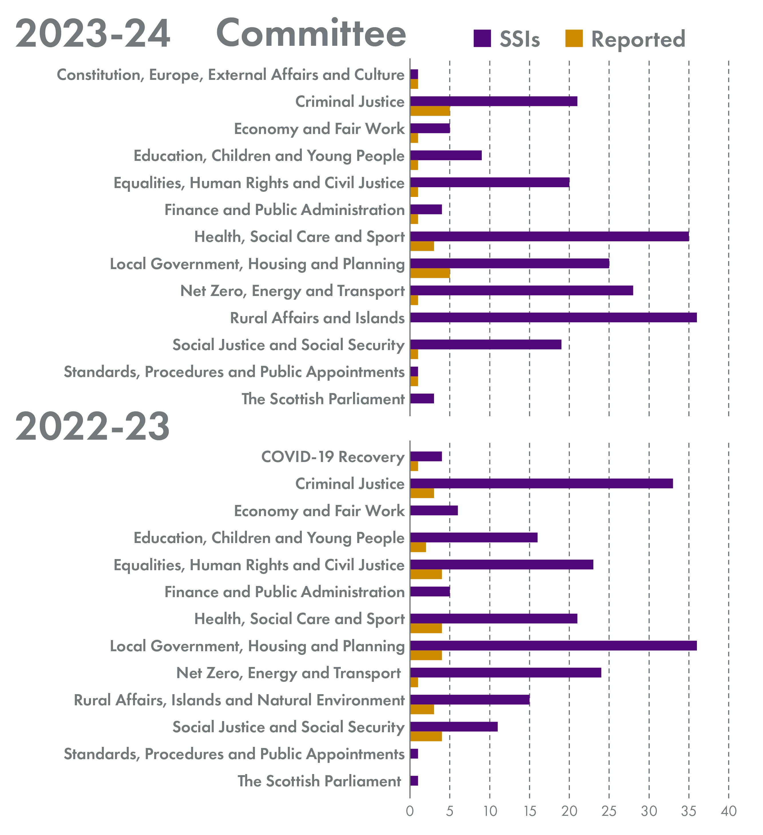 The Rural Affairs and Islands Committee received the most instruments this year, with a total of 36.