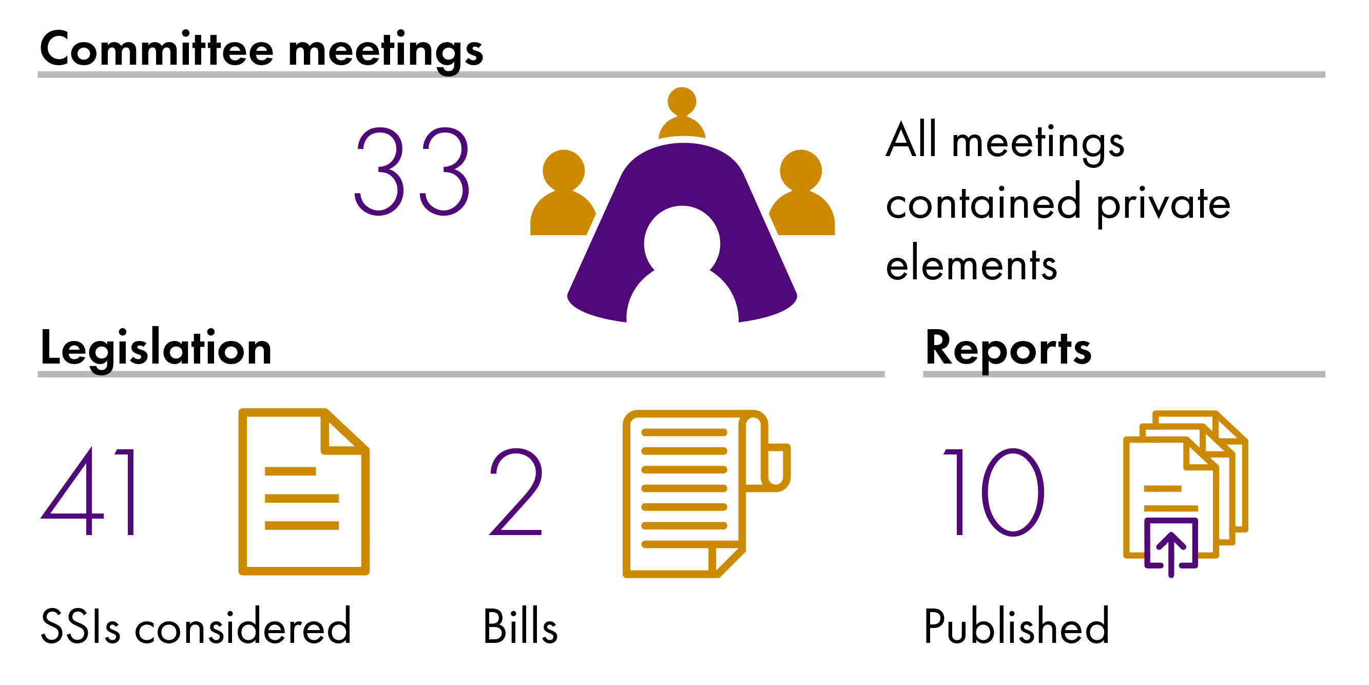 The first part of this report reflects on the second year of this session and the progress that has been made on recommendations since the Committee's last tracking report. The following infographic, provides a brief summary of the work the Committee has done this year.