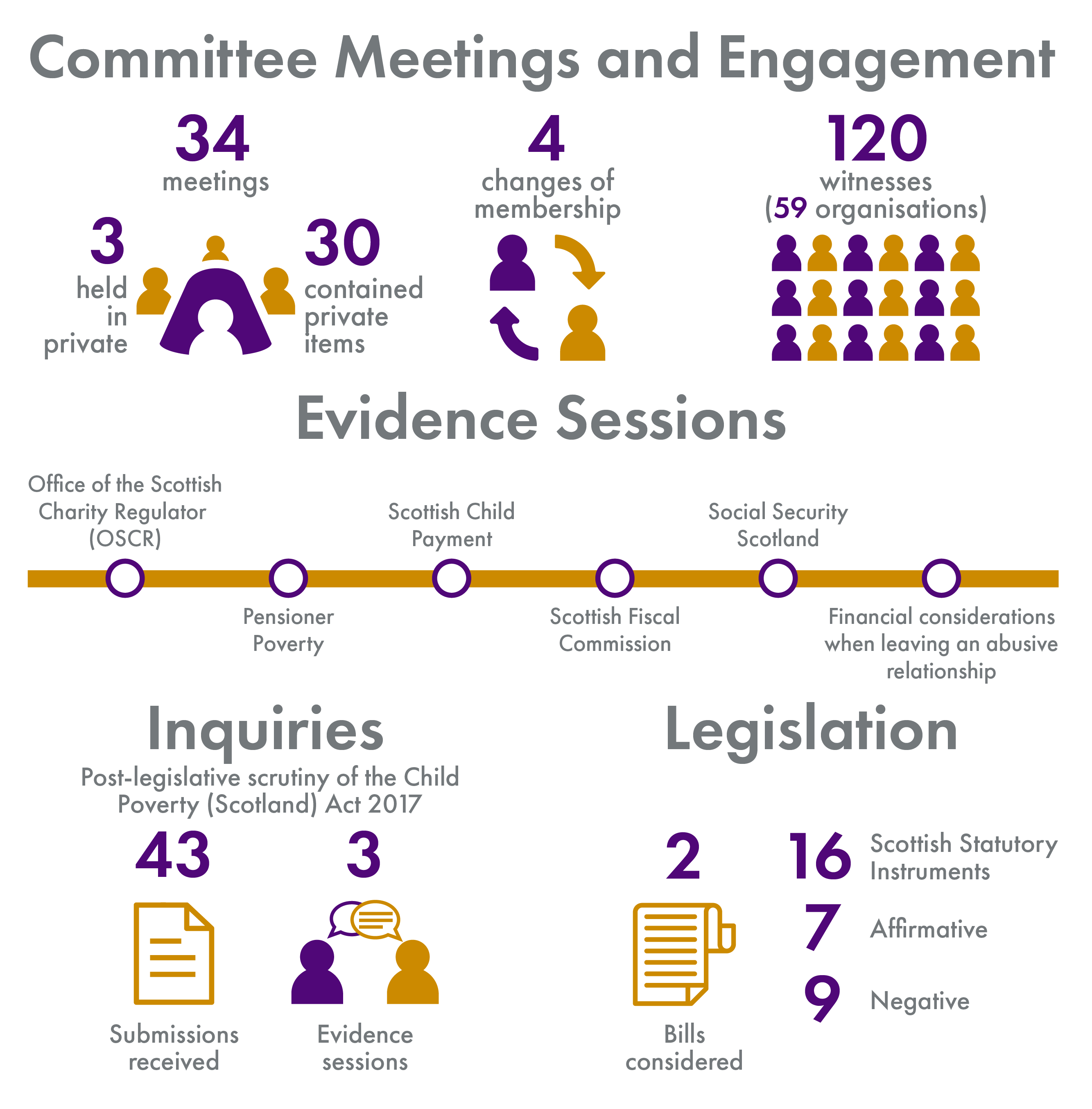 During 2024-25, the Committee's post-legislative scrutiny of the Child Poverty (Scotland) Act 2017 added to that work by considering the impact of having a legislative framework underpinning policies and consideration of whether there would be different policies and less of a focus on child poverty without a statutory approach.