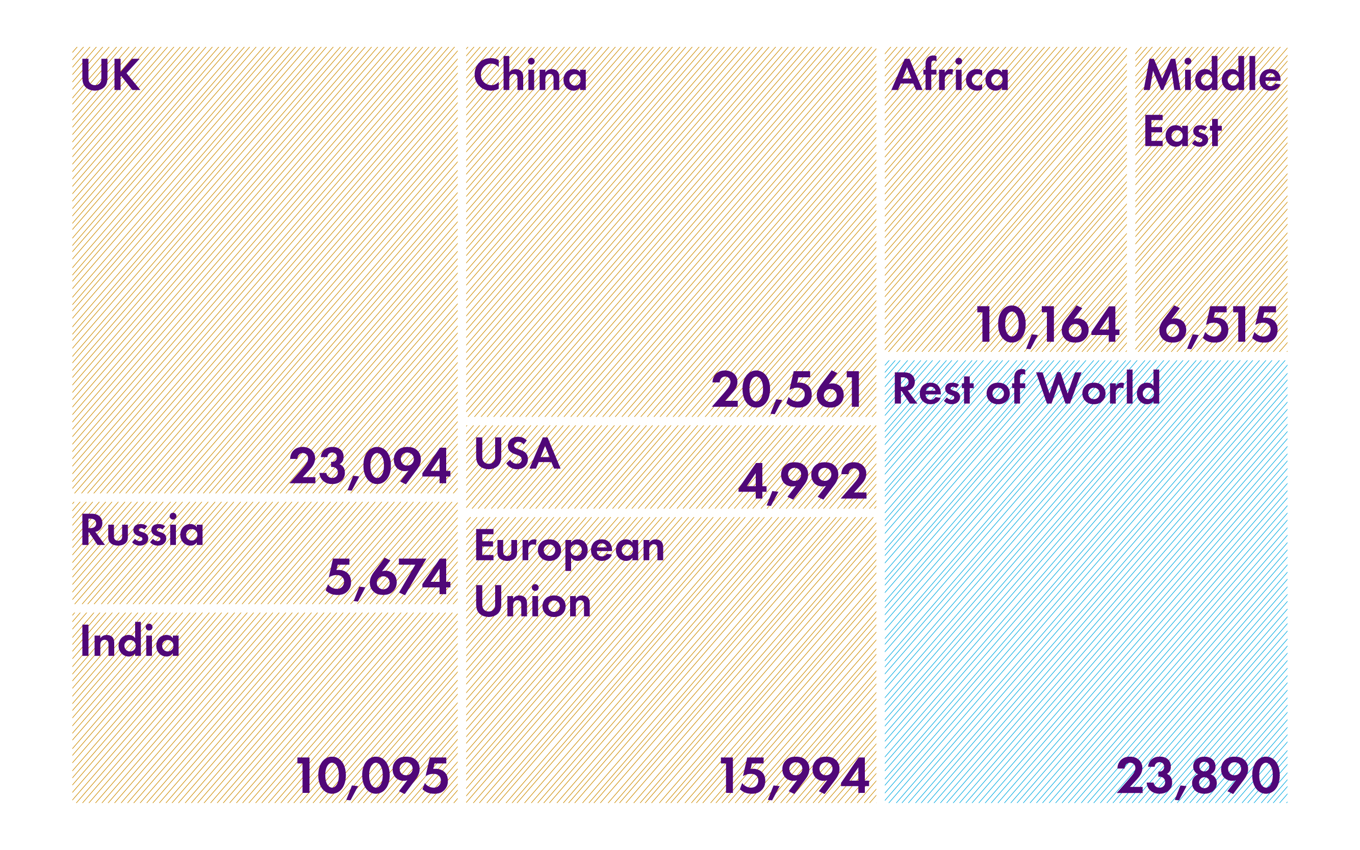 Figure 5: Scotland's material footprint by country of origin, 2019 (values in thousand tonnes).