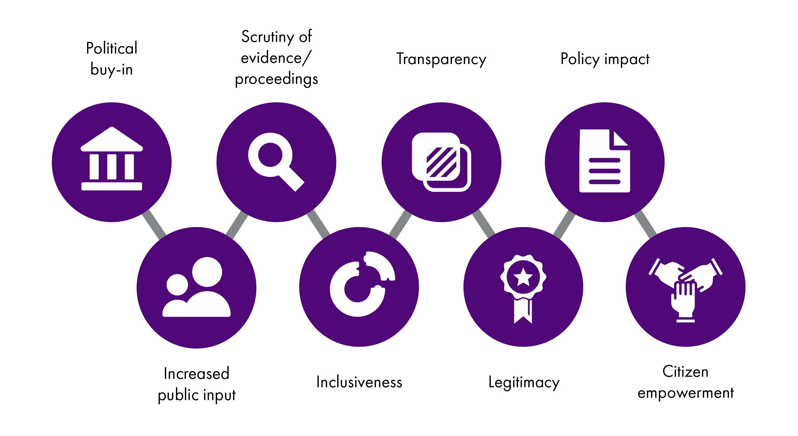 Deliberative processes will not always result in change, but the policy scrutiny it affords is designed to improve policy, by making scrutiny more transparent, and decisions more robust and sustainable. Expectations of participants and political actors should be managed.