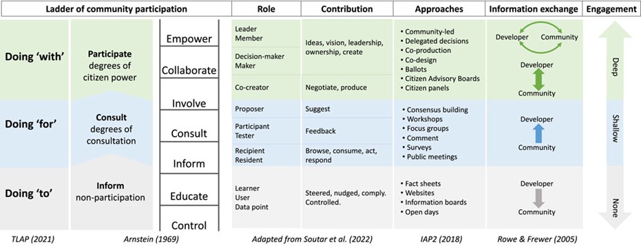 The tables in this section show PACT activity to date, mapped out against Roberts et al's Ladder of Community Participation. This is not an exhaustive list of activity, or a fixed format, rather it aims to demonstrate how PACT work might be set out in a repository of practice as per the repost section 'Evidence, case studies and repositories' and recommendations on 'Evaluating deliberative practice'.