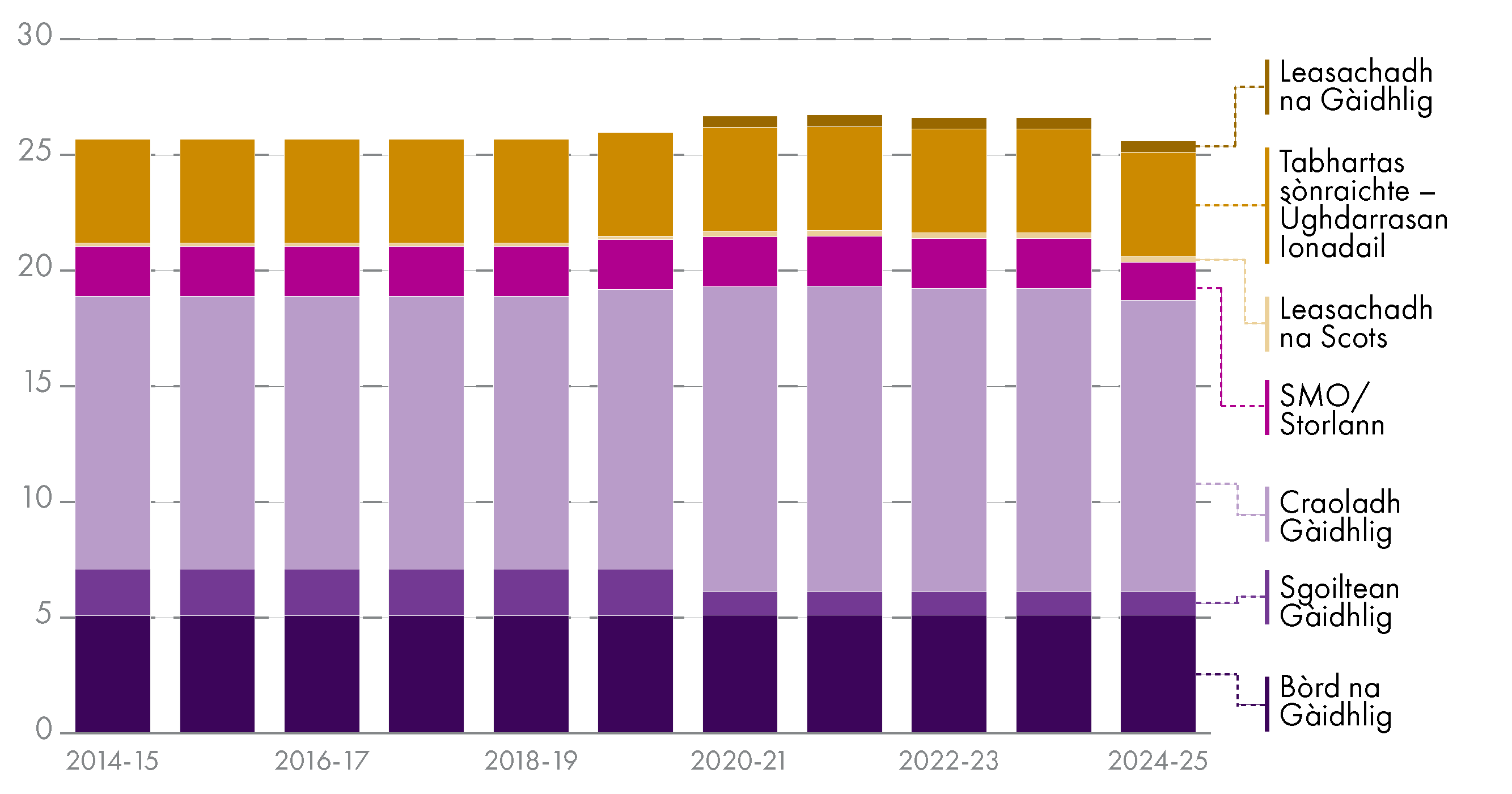 | 2024-25 | 2025-26 | 2026-27 | 2027-28 | 2028-29 | 2029-30 | Iomlan | |