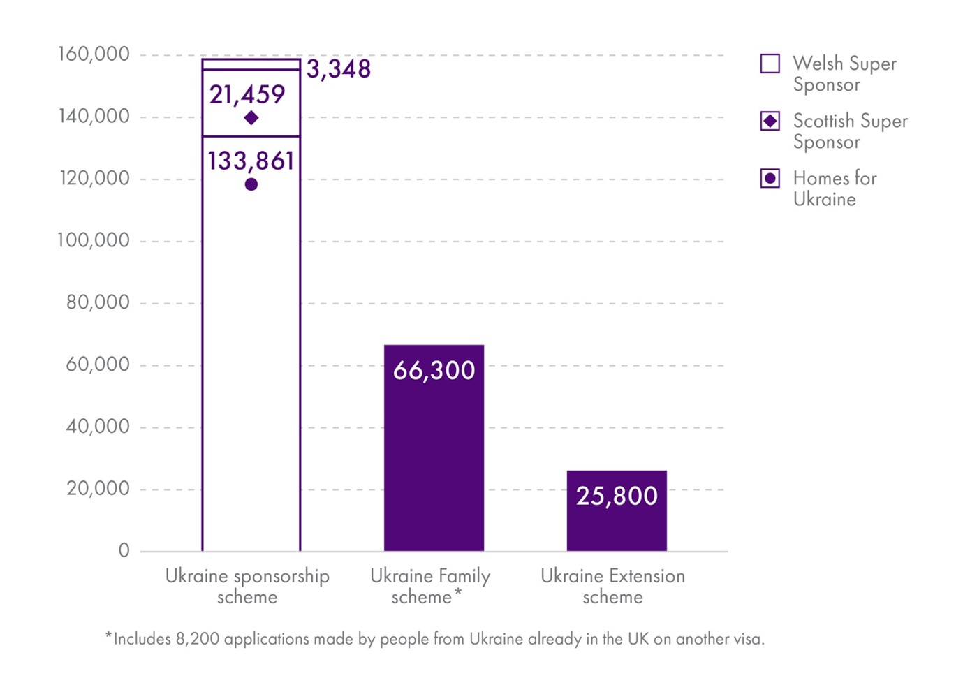 Following the Russian invasion, the UK Government launched the Homes for Ukraine Scheme and the Ukraine Family Scheme. The Homes for Ukraine scheme (also referred to as the Ukraine Sponsorship Scheme) allowed UK residents to sponsor displaced people from Ukraine to live with them while the Ukraine Family Scheme permitted Ukrainian nationals to join or stay with their relatives in the UK. A Ukraine Extension Scheme was also introduced for persons from Ukraine who held a valid UK visa on or after 1 January 2022.