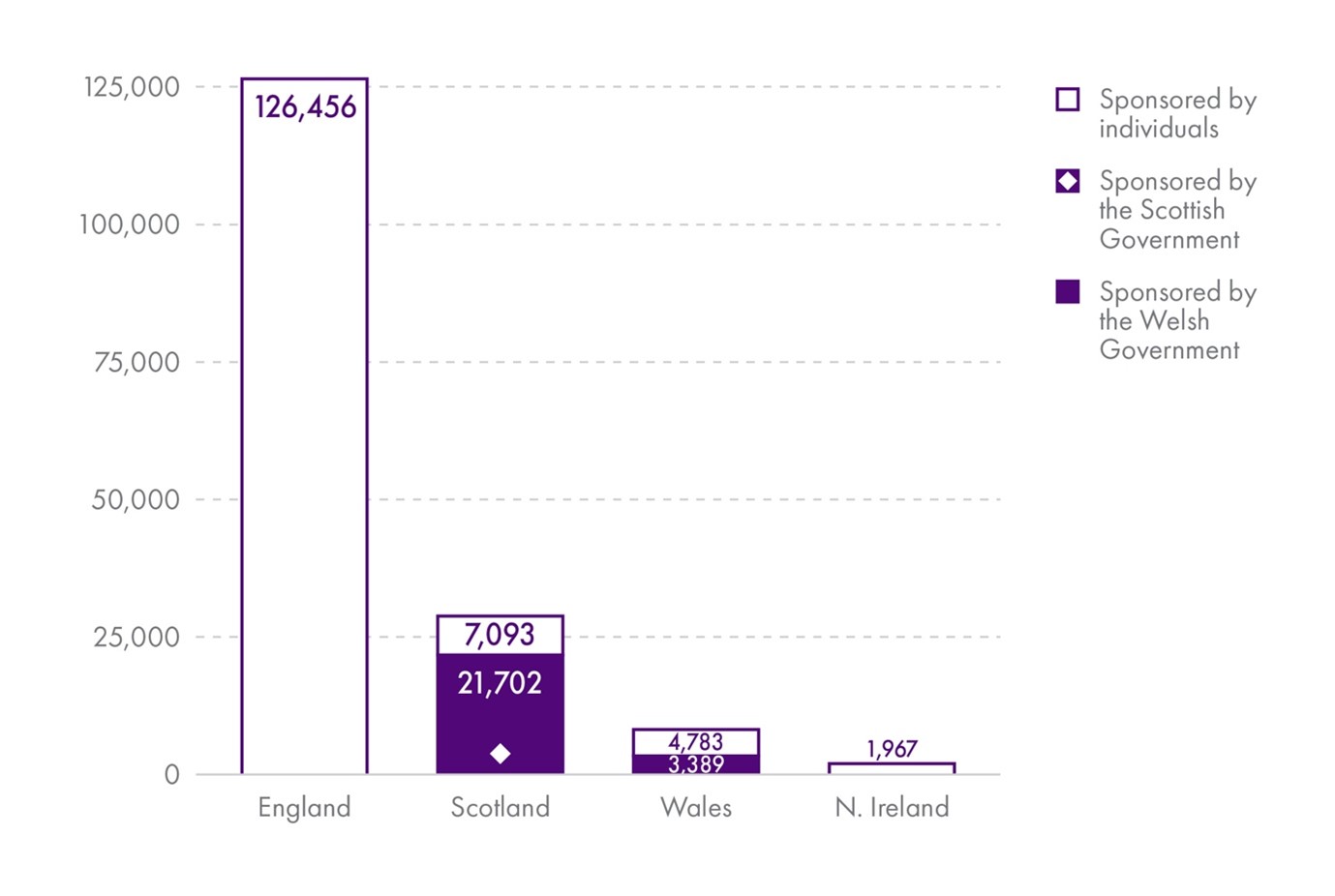 The Scottish Government has acted as sponsor for 21,702 displaced persons from Ukraine, which represents 75% of the total number of arrivals of people to the UK through a Scotland-based sponsorship arrangement (see Figure 4).2 At the time of writing, there are a further 11,164 Scottish Super Sponsor visa holders that could yet travel to Scotland.2